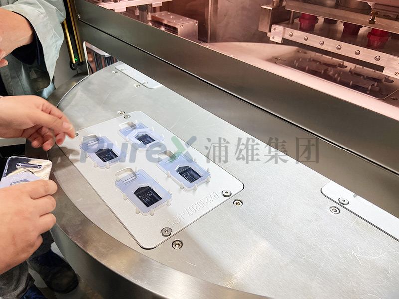 操作流程:可配输送线自动送料->人工放产品->自动放盖材->自动热封->自动取成品->自动传出。